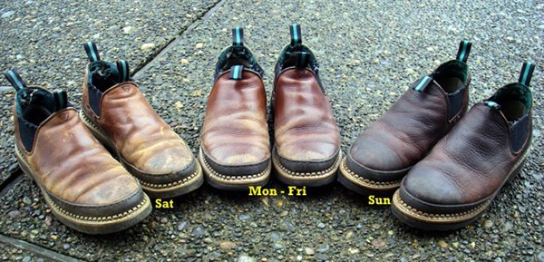 I’m happy to say though the romeos did indeed mend the wounds. He admitted that romeos were good work shoes, but swore that he wasn’t wearing them for anything else.