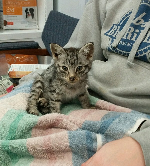 This 7-week old kitten was found along the road, near Elk Loop, last Tuesday during the storm. The kitten was taken to a Good Samaritan and she cared for the kitten until it could be seen by Dr. Dowell the next day.