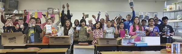Together, we collected almost 800 items! The sixth-graders were the collectors, movers, haulers, sorters and packers of many, many boxes of contributions. A very special thank you goes out to our very own FIS staff member Lisa Bishop for keeping our count on track, loading up the display case and boxing up food.