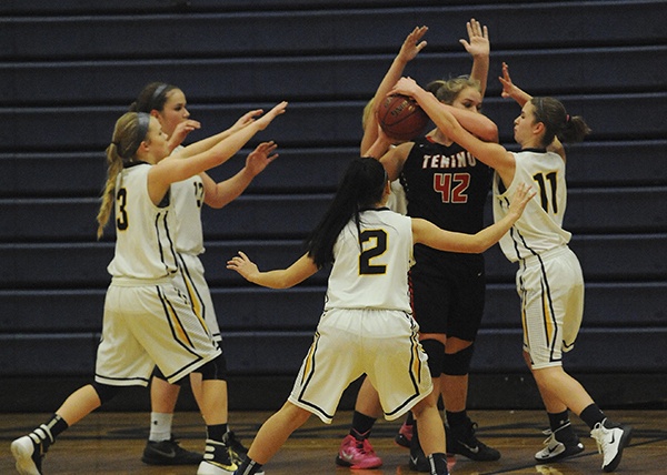 We have three seniors on the team that will be missed next year. Kaitlin Rowley, Brittney Woodruff and Skyler DeMatties. Brittney played four years of basketball and was a team captain this year and played the post. She had a solid year on defense and the boards.