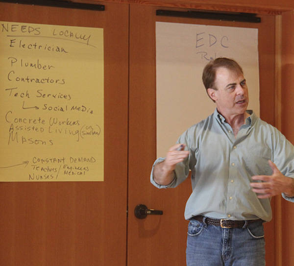 In an effort to do more for the communities of Clallam County EDC Executive Director Bob Schroeter hosted a town hall meeting in Forks, Thursday, July 20, at the Rainforest Arts Center. The late afternoon event drew a small group of interested citizens, representing the Forks Chamber of Commerce, West End Business and Professional Association, the City of Forks and city council, county commissioners current and former, a Port of Port Angeles commissioner, a candidate for mayor and several residents relatively new to the West End.