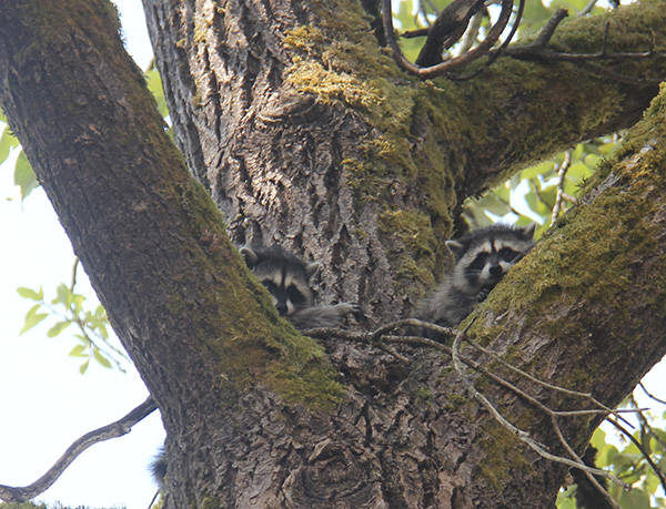 On Monday morning a couple of masked individuals (raccoons) took up residence in the tree next to the Forks Forum office … they moved out that afternoon.