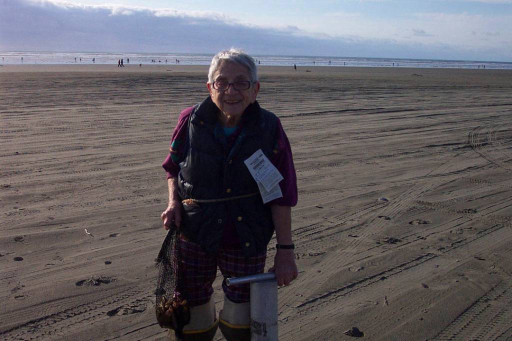 To celebrate her 100th birthday Pearl went clam digging. She is a little put out though that at her age she still has to buy her clam digging license.
