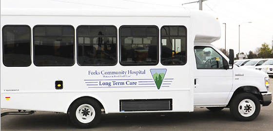 The 2018 StarCraft Allstar 22 ADA Shuttle Bus purchased with community donations to the Forks Hospital Foundation.