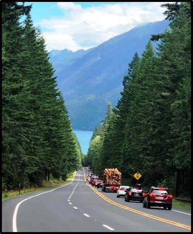 The road along Lake Crescent’s south shore was built in the early 1920s, replacing ferry passage across the lake. Today the road is part of U.S. Highway 101 and remains a vital transportation link and popular sightseeing route for visitors to the Lake Crescent area and the Olympic Peninsula. In 2015, over 420,000 vehicles traveled this road.