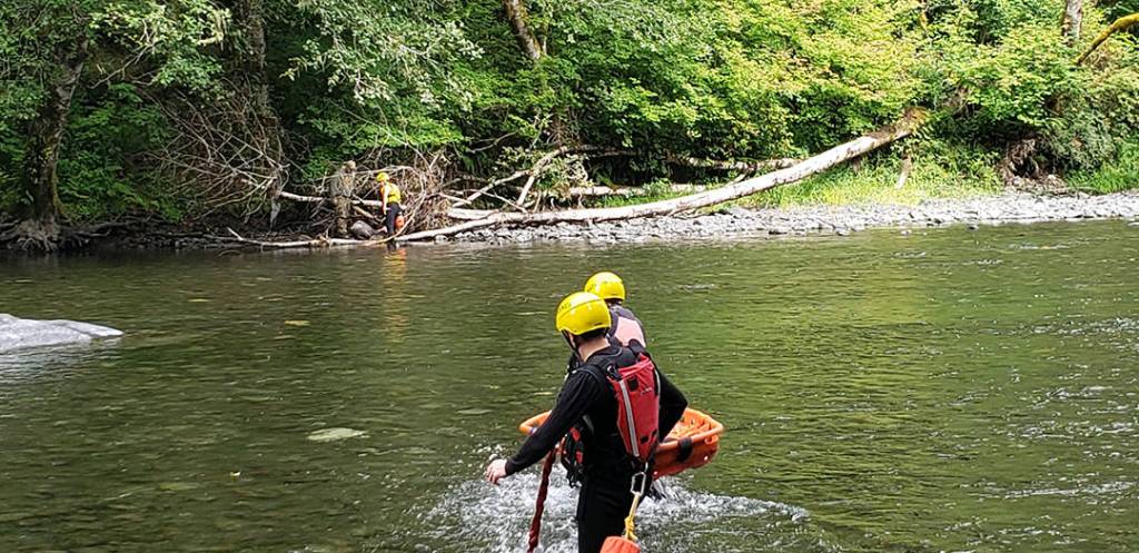 The drill consisted of both teams searching and extracting three victims and lasted approximately 90 minutes over a 2.3-mile section of the Sol Duc River.
