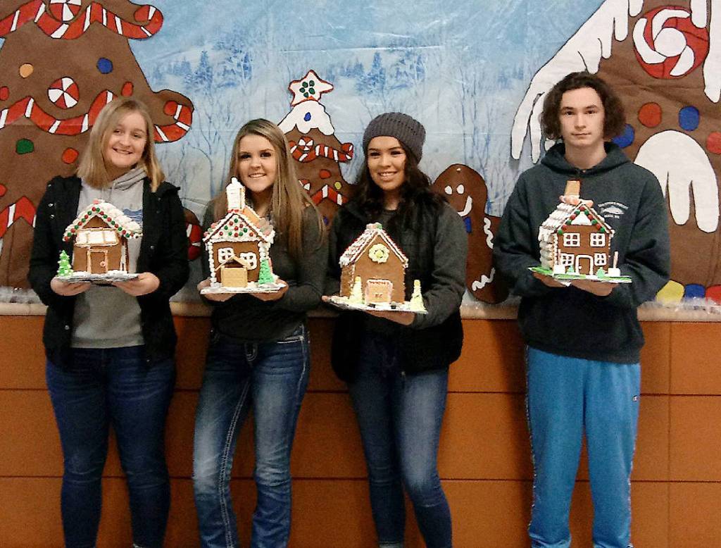 The houses were judged by staff and the top five houses were chosen. 1st place is Emma White, 2nd is Trent Chase, 3rd is Madelyn Salazar, 4th is Sheena Kosz-Cleveland, and 5th is Ashlynn Carstensen.