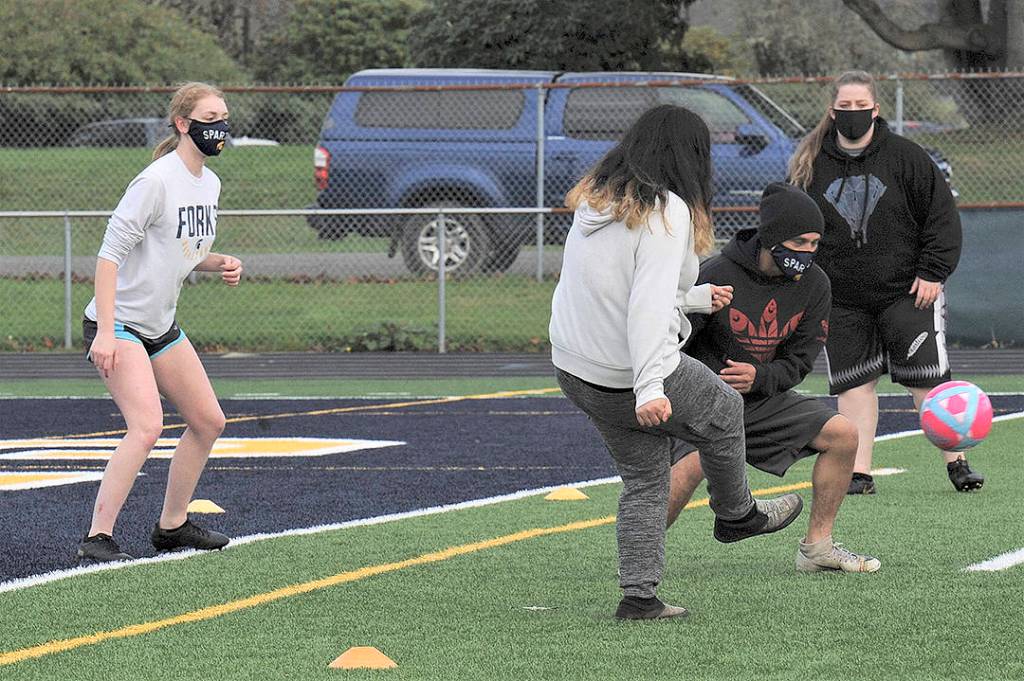 Footballs were being aired out Oct 29 at Spartan Stadium where FHS players practice in what one might consider as spring turnout in the fall. League won’t begin until March of 2021. Photo by Lonnie Archibald.
