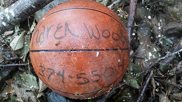 So when a basketball caught his eye as he was working, he must have thought, “Is that a basketball?” So as he kept working he decided he had to go look, after moving a couple of limbs, laying there in the middle of nowhere, was a basketball. But, this basketball had a name, a phone number and an address on it and it looked to be in pretty good shape, even almost full of air.