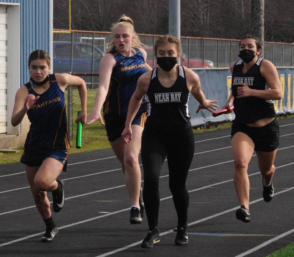 Winning the 4×200 was a Forks team of Myra Luong, Emery Damron, Kesia Rowley and Candida-Rose Sandoval in a time of 2:08.72, barely edging a Neah Bay team of Ryana Moss, Laila Greene, Shilaly Woodruff and Kianah Cameron (2:09.13).