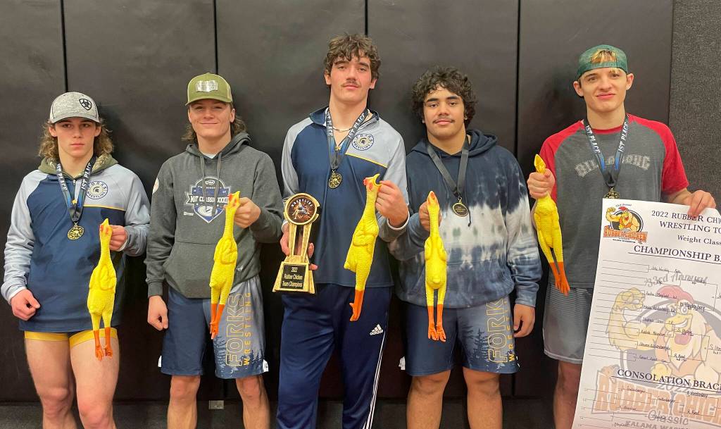 KALAMA — The Forks wrestling team picked up five first-place finishes and took first place as a team at the Kalama Rubber Chicken tournament this weekend.