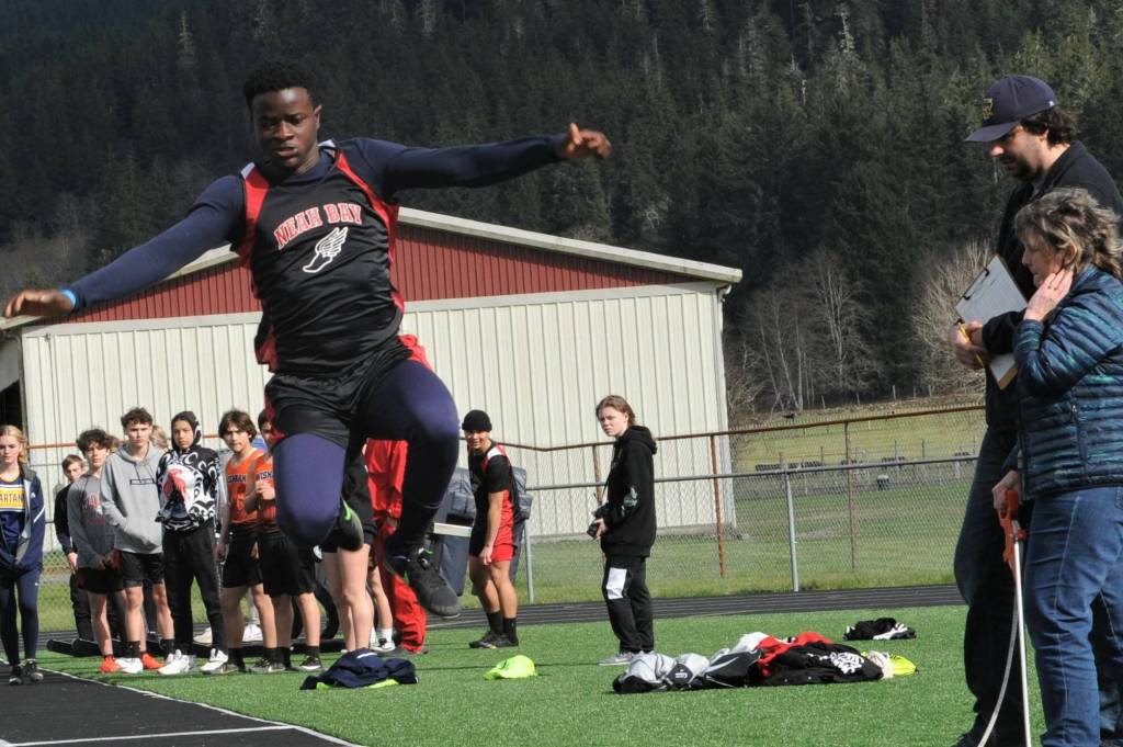 Track teams from Clallam Bay, Neah Bay, South Bend, Elma, Wishkah Valley, and Taholah traveled to Forks Thursday afternoon for a meet in the sun. The Spartan boys and girls both garnered the most points with Elma coming in second and South Bend third for both the boys and girls teams.