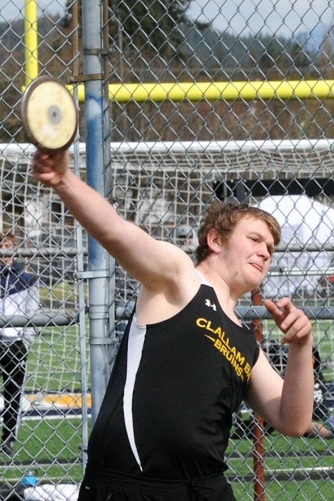 Clallam Bay’s Taylor Aukurman competed in the discus during the Forks Lions Club sponsored track and field competitions held at Spartan Stadium Saturday. Photo by Lonnie Archibald