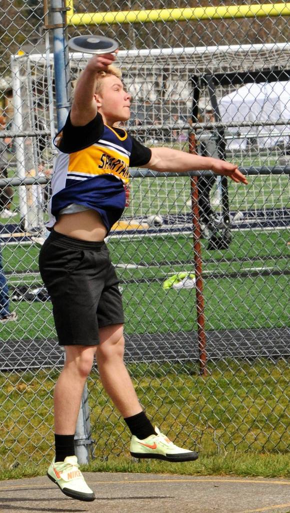 Spartan Nate Dahlgren competed in the discus throw. Photo by Lonnie Archibald