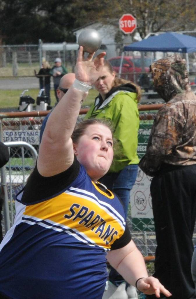 Spartan Lindsey Edwards competed in the shot put. Photo by Lonnie Archibald