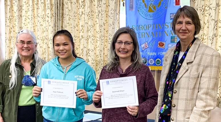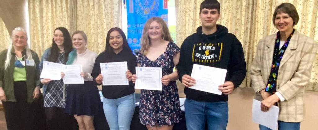 Soroptimist scholarships, ranging from $500 to $2,000, were presented to: Victoria Donoghue of Clallam Bay, Jeidi Ahilon-Perez, Nicole Winger, Florentina Matias Pablo, Maribel Davila-Green, Abigail Stutes, Sarah Curtis, Kyrissa Duncan, Myra Luong, Holly Hillcar. A Soroptimist renewal scholarship was presented to Natalie Lausche.