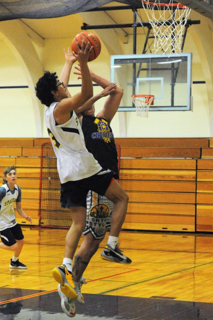The Forks Spartans scrimmaged with Crescent in the Spartan auxiliary gym on Thursday, June 9. Forks took both games from the visitors. Photos Lonnie Archibald