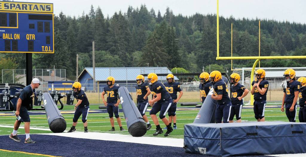 The Forks High School football team has been participating in two a day practices in preparation for the upcoming season which is scheduled to begin in Sequim at 6:30 p.m. Friday, Sept. 2. The first home game is scheduled to be played against Ilwaco Friday, Sept. 23 at 7 p.m. Photos by Lonnie Archibald.