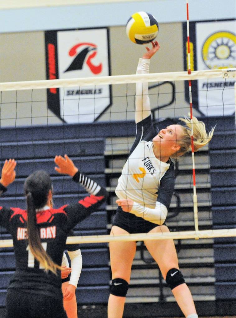 Neah Bay visited Forks for a rematch on Thursday, Sept. 8 in the Spartan Gym. Forks had defeated the Red Devils 3 to 2 in Neah Bay but this time Neah Bay defeated the Spartans 3 to 1 in this non-league varsity contest. In JV action Forks won 3 to 0. No Neah Bay roster was available on the website. Photos by Lonnie Archibald