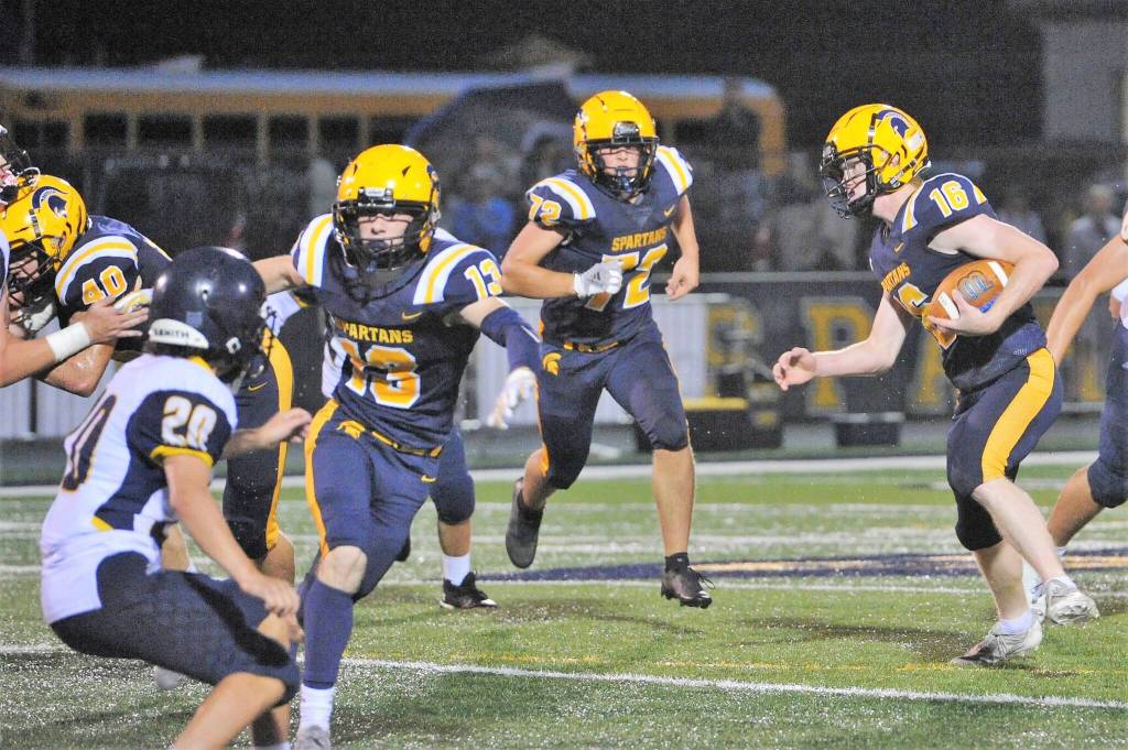 Quarterback Gunner Rogers was head coach Trevor Highfield’s Spartan of the Week after running for touchdowns of 10, 44 and 14 yards, while also tossing a 68-yard touchdown pass to Ryan Rancourt and a 42-yarder to Walker Wheeler.