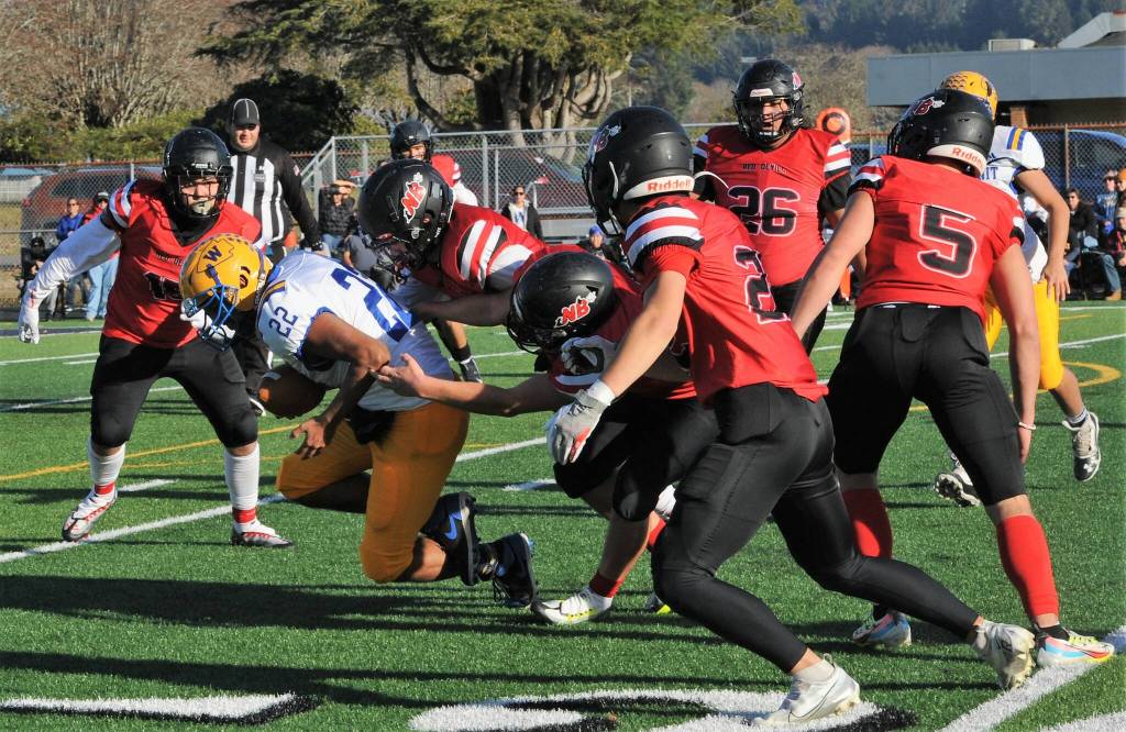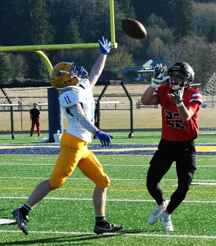 Abrahamson connected on a few passes, including an 18-yard touchdown and a 48-yard touchdown late in the fourth quarter, but not enough to seriously threaten the Red Devils. Defensive backs Wimberley and Julian Carrick were busy all game, repeatedly breaking up Abrahamson’s high-arcing passes and not letting Hughes or the other Wellpinit receivers run loose. Wimberley also had an interception.