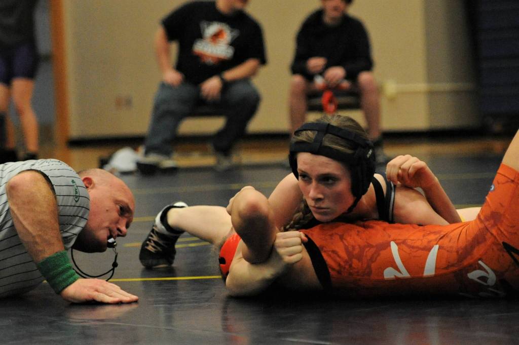 Spartan Miley Blanton pinned Anna Abott of Kalama in the 125 lb bracket.