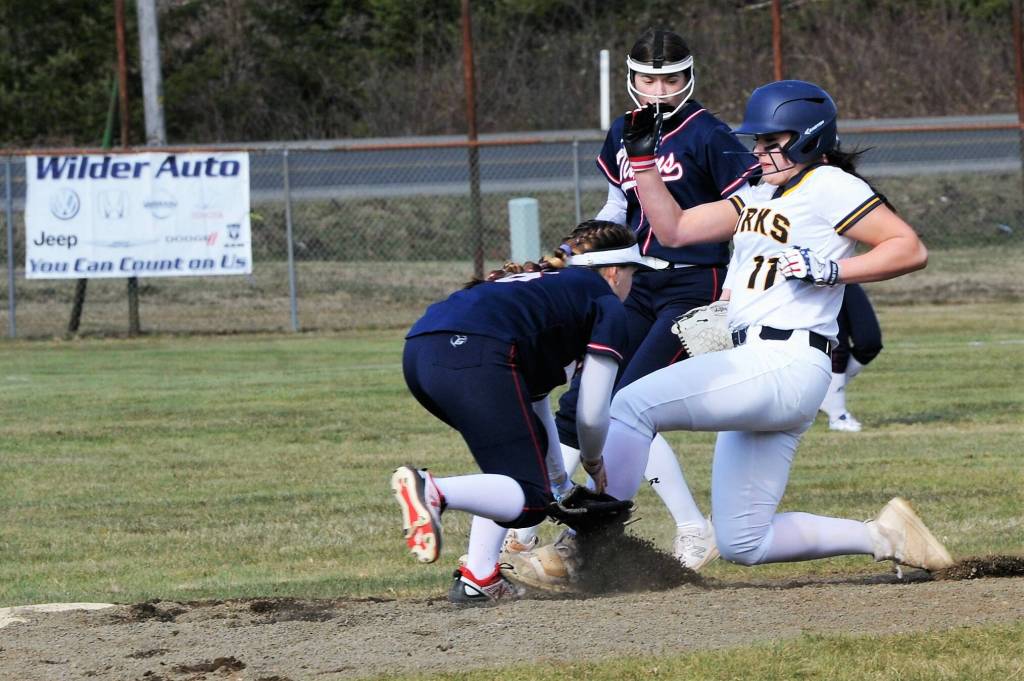 FORKS — Forks split its Pacific League softball opening doubleheader, walking off the Titans with an RBI double in the bottom of the seventh in a 5-3 win and falling 10-8 in the nitecap at Tillicum Park.