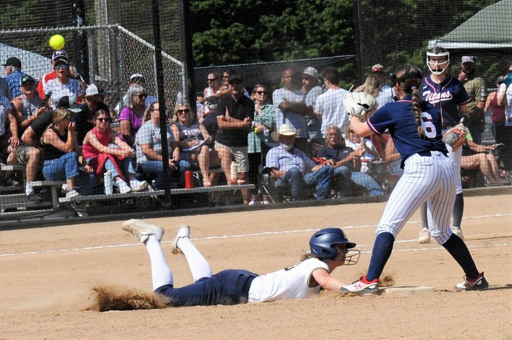 The Forks softball team played Pe Ell/Willapa Valley for the fourth time this season, losing a close one Saturday afternoon 5-3 to the Titans in the District 1/4 tournament consolation finals at Fort Borst Park.
