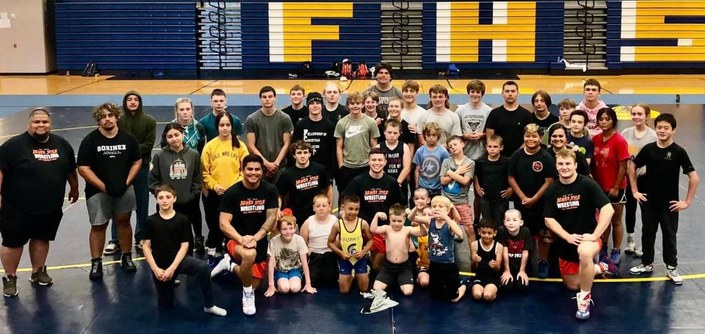 These young future Spartan wrestlers were busy in the FHS wrestling room Thursday during the 2nd annual Rain of Terror Haunted Hanger Wrestling Camp. Photo by Lonnie Archibald