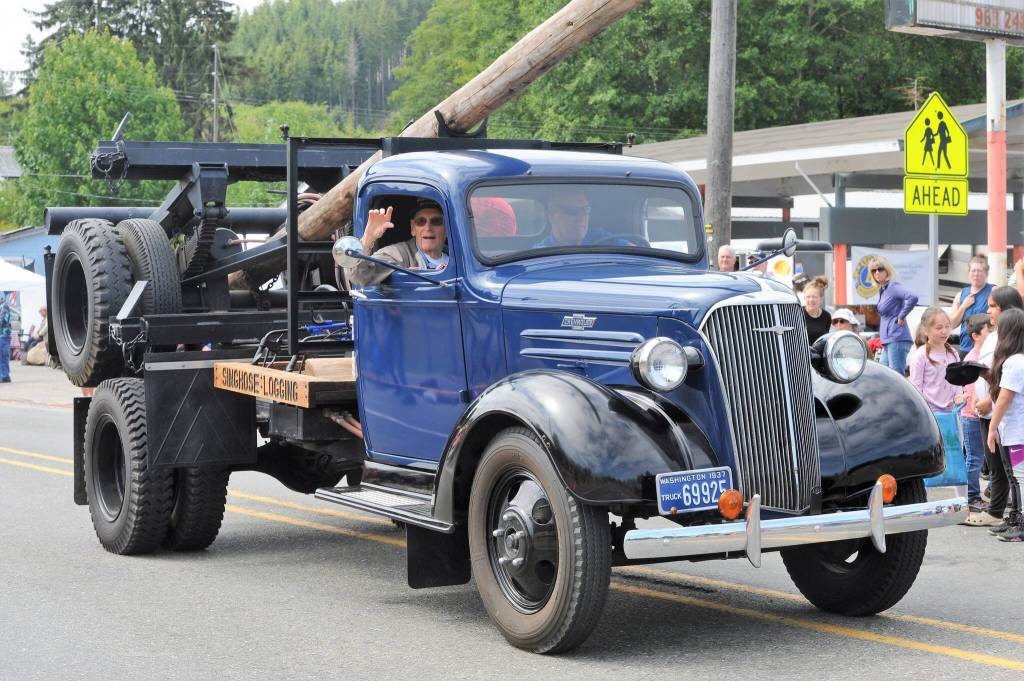 John Singhose’s 1937 Chevy log truck driven by Steve Singhose, made the trip from Joyce with John riding shotgun.