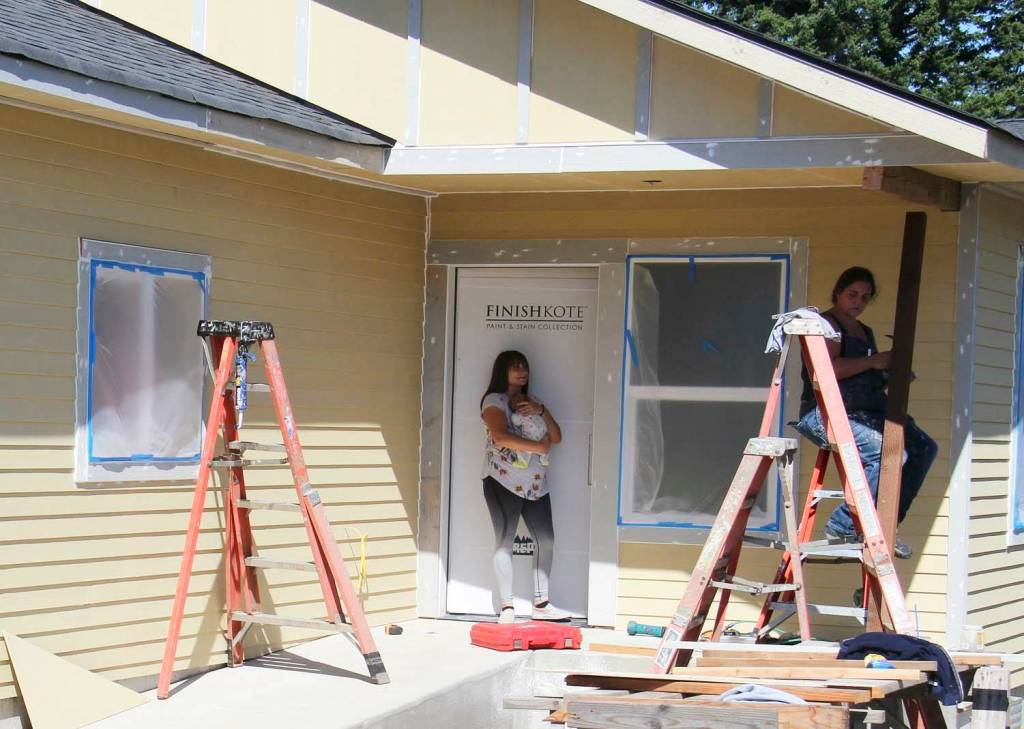 Houses are taking shape on Maloney Lane but more work needs to be done …A participant works last Friday to get siding on one of the homes before the winter rains arrive. If you have a few hours to spare come roll up your sleeves and join in this incredible effort which will result in five Forks families (a total of nine adults and ten children) achieving a crucial amount of financial stability by finally owning their own homes. No skills are required all sorts of help would be welcomed, from cleanup to assisting with more difficult tasks.With funding from USDA grants and overseen by Peninsula Housing Authority (PHA), this project empowers groups of families to collectively build homes for themselves and each other, using sweat equity and volunteer labor. Photos Christi Baron