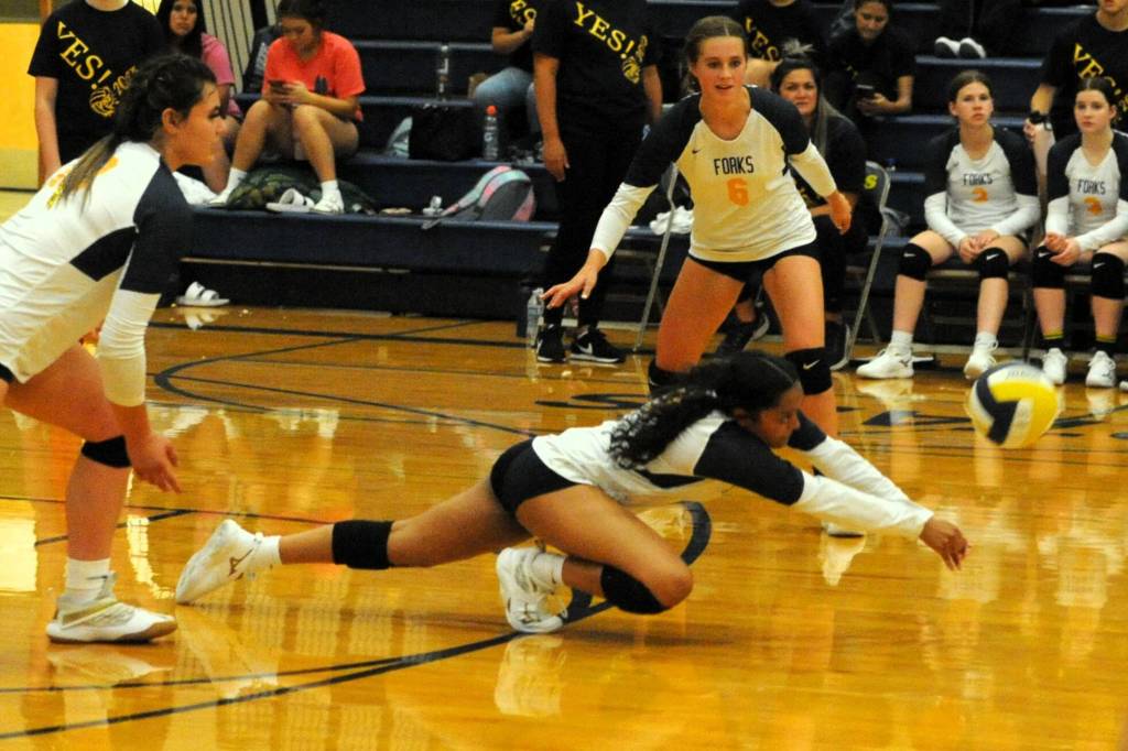 Eladia Hernandez-Stansbury can dig it against Onalaska. It was Forks 3 and Onalaska 2.