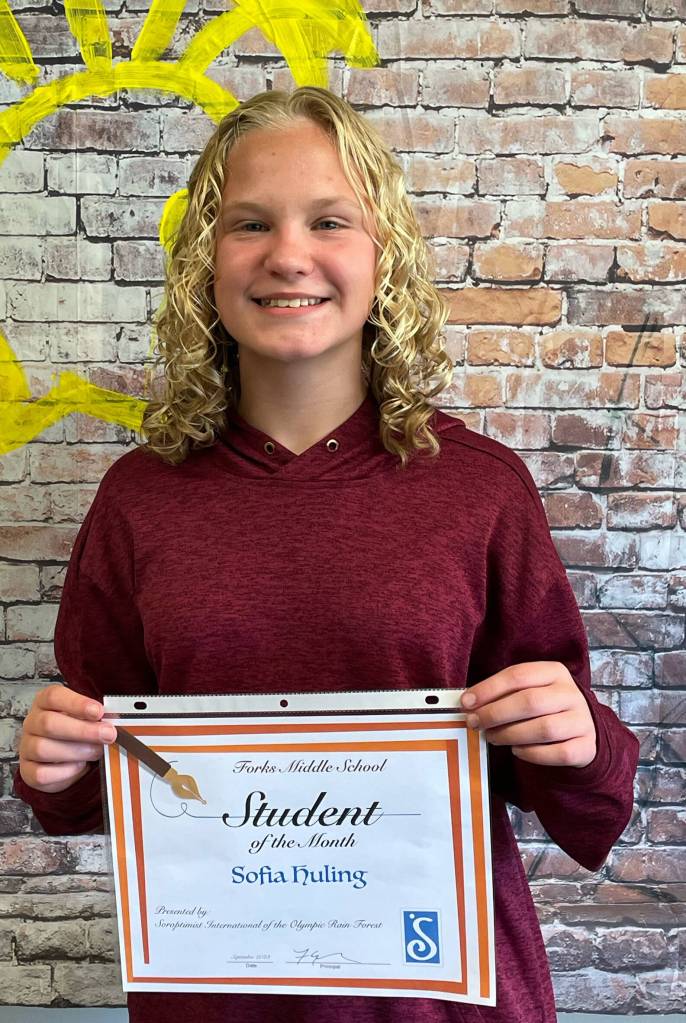 Sofia also likes school because she gets to learn new things. Her favorite subject this year is math.Her goal for the school year is to get all As and Bs. She likes the color purple, ice cream, butterflies, and painting. Sofia’s teachers say,” Sofia Huling is always responsible and respectful. She is always making sure she checks in for missing work when she misses a day. She listens attentively and asks questions when necessary.” Another teacher noted, “Sofia Huling is a VERY dedicated student. She works hard, asks for help when she is struggling and always turns in her work before the due date. In class she is quiet, respectful and helps others. She is always kind and respectful to all (students and staff) and a wonderful role model to her classmates.”