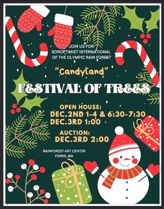 Christmas is just around the corner… Make your calendars for Dec. 2 and 3 for Soroptimist International of the Olympic Rain Forest 28th annual Festival of Trees “Candyland”.