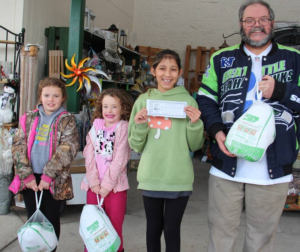 West End Business & Professional Association kicked off the Holiday Season with the first Turkey Drawing last Saturday. Sally Jo Baker and Eliza Hull won turkeys, Jayden Ceja won a Sully’s Gift Certificate and Ed Stringer also won a turkey. Also winning Sully’s Certificates and not pictured were Elizabeth Kosz-Cleveland and Lisa Bishop. Remember to bring your blue tickets next Saturday when three more turkey winners will be drawn. Photo Christi Baron