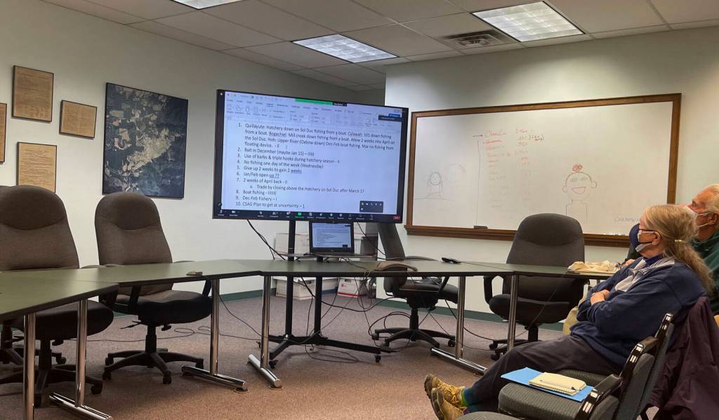 On October 26 at 6 p.m., the Olympic Peninsula Guides’ Association and the City of Forks hosted a discussion for anglers on OP Steelhead. There were 20 in attendance at the Forks City Hall and 9 attending remotely. Upon a quick survey of the room, many of those in attendance hadn’t tuned into the WDFW town hall the night before, so the first part of the meeting was spent with Bob Kratzer updating the group with information from WDFW’s Town Hall.