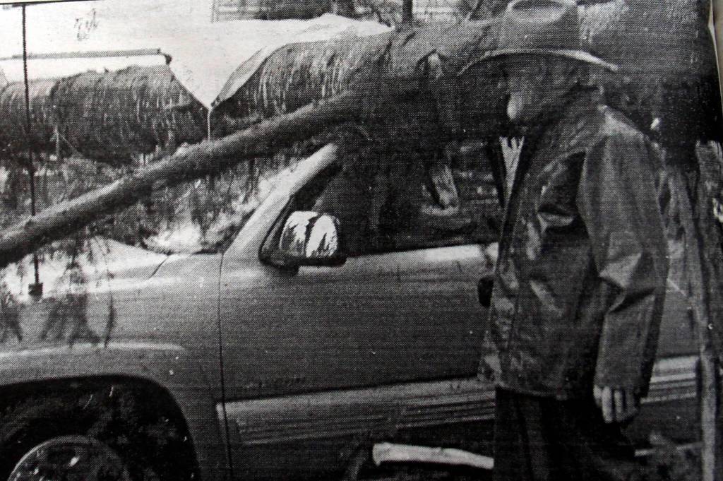 This week, twenty-five years ago it was reported that the QVSD M&O Levy had failed. Superintendent Jones had shared that cuts to staff and some activities would be on the horizon. More storms and more power outages had happened. Local fishing guide Chris Olsen had quite a large tree fall on his nearly new 1999 pickup! (photo) Russell Road had seen some significant flooding. A 40-foot steeple had been installed on the LDS church on Calawah Way. More pigs were available for adoption at the Forks animal shelter.