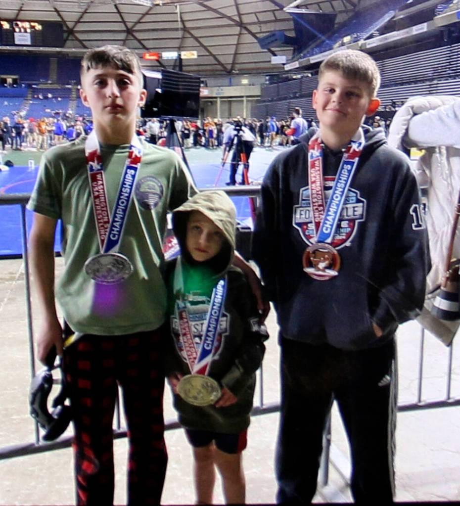 Levi Bechtold 8th in state, Kendric Riebe 6th in state, Kingsley Davis 5th in state, Easton House 5th in state, Paxton Kerschner 4th in state, Finn Paul 4th in state, Owen McReynolds 4th in state, Dominick Sanchez 2nd in state, Easton Burns State Champion and Jade Blair State Champion.