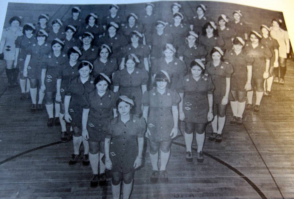 In 1974, in city council news, it was stated that Frank Lyda had reported that he was getting calls of concern that the Demo-Derby pit was filled with water and a potential danger to children. The Forks Variety Store, long operated by Muriel and Del Huggins, had been sold to Dennis Kinder and Roy Ullas. The Huggins’ had started in business when they bought Elliott’s 5 and 10 in 1948. In 1953 they built a new store at the corner of E. Division and Main Street. The FHS Drill Team appeared in a full-page ad – sponsored by almost 70 local businesses. The Drill Team thanked the community for helping fund their trip to Conference (photo).