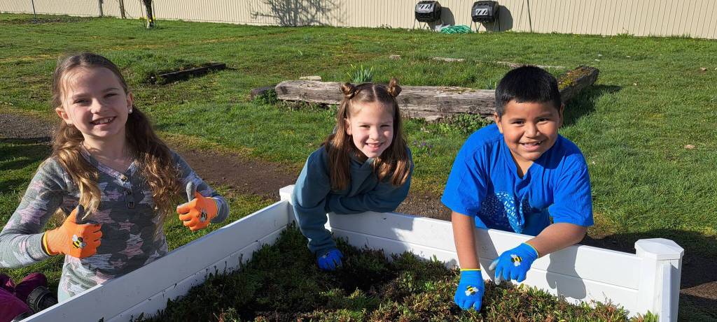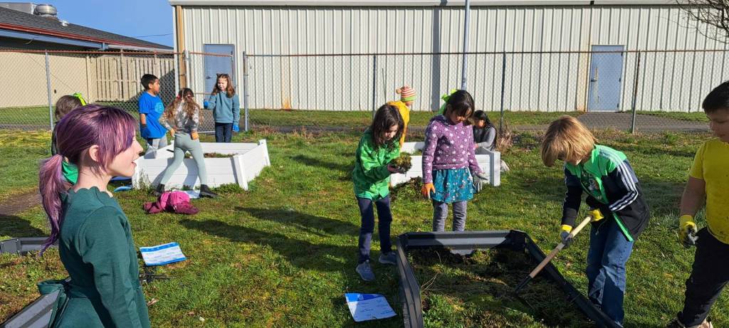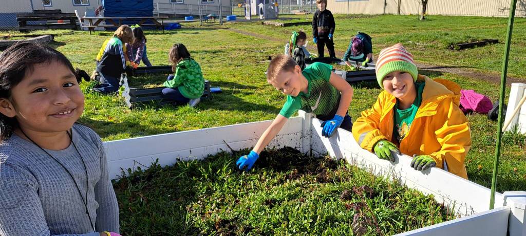 Lisa Joynes’s 2nd-grade class at Forks Elementary has been busy getting raised beds weeded in the school garden to prepare them for planting. Joynes received a scholarship from the Bogachiel Garden Club to purchase gardening gloves and tools for the students.