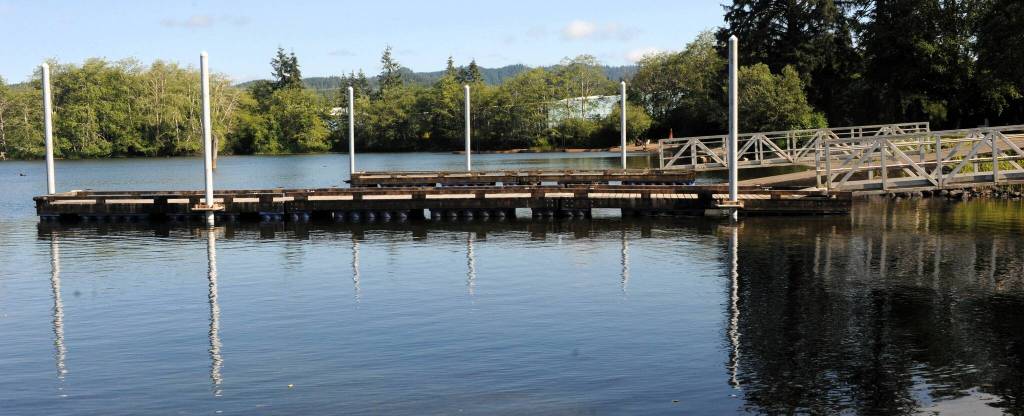 The dock at the Lake Pleasant County Park was reinstalled as of Thursday, July 18. On Friday Don Crawford Director of Parks, Fairs, and Facilities for Clallam County said, “The park and the pier should be open early. The press release did say next Friday, July 26 for opening but, I am optimistic about a sooner time frame. There will be some residual minor efforts for a couple of weeks but, they shouldn’t affect the public enjoyment of the facility.” Photo by Lonie Archibald
