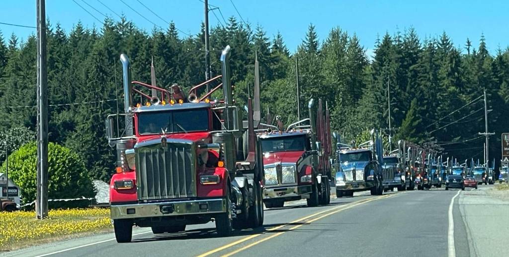 On Saturday afternoon a truck procession of almost 50 trucks paid tribute to fellow truck driver Paul Haugh. The trucks were escorted by law enforcement through town and then proceeded to the Forks Elks Lodge for Paul’s celebration of life. Photo Mike Zavadlov