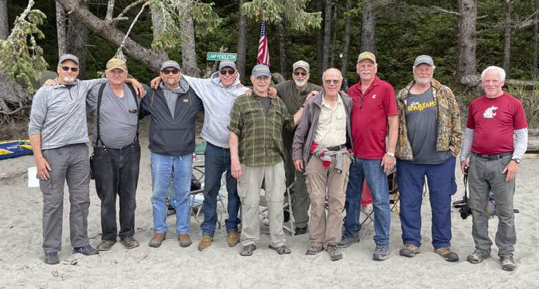 The idea for a reunion-hike to Toleak Point came about in May at the memorial service for Russell Thomas, Kent Thomas’ father. A group of old friends decided they never got to see each other anymore, some still live in the Forks area, but the majority live across the state, including Thomas. So the date was set and the hike was named Hogathon 2010. Those participating would be Thomas, Kevin Hinchen, Jeff Sullivan, Ron Archer, Mike Brandeberry, Dave Otos, Cliff Otos, Bruce Dunlap, Stephen Morgan, and Bill Brager. Also, one younger “Hog”, Sam Hinchen joined the hike. Several of the participants still do some hiking but the majority had not had a pack on for almost thirty-five years.