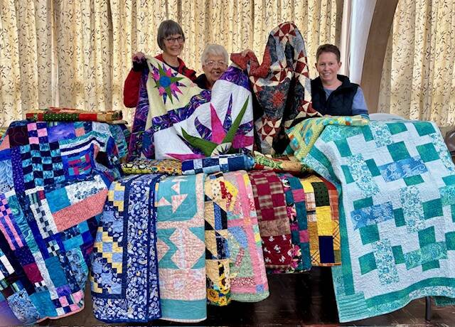 Pictured with the quilts are Cindy Mesenbrink, Karla Lewis, and Connie Sallee. Submitted photo