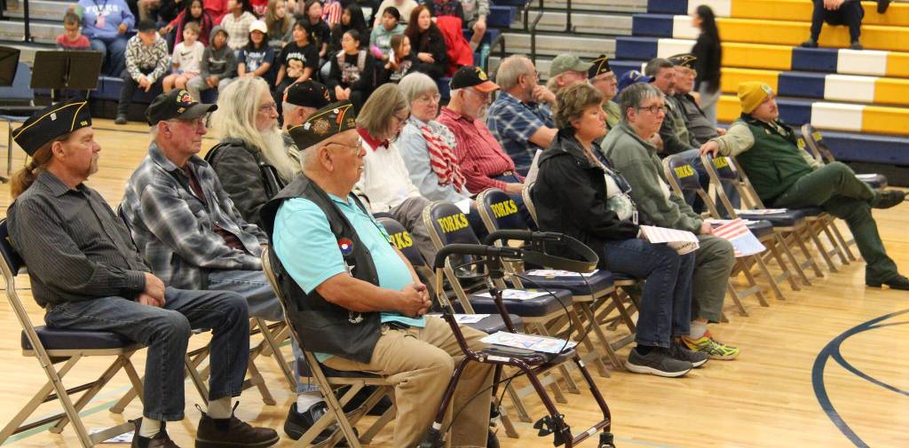 The Veterans attending the school assembly sat in honor together on the gym floor. More photos on page 7. Photos Christi Baron