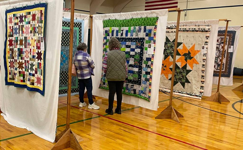 Around 100 quilts were on display over the weekend in the auxiliary gym for the annual Fabric of the Forest Quilt Show. Some were new creations and some were very old. This quilt made in 1870 is a family treasure owned by Laura Farrell complete with family photos.