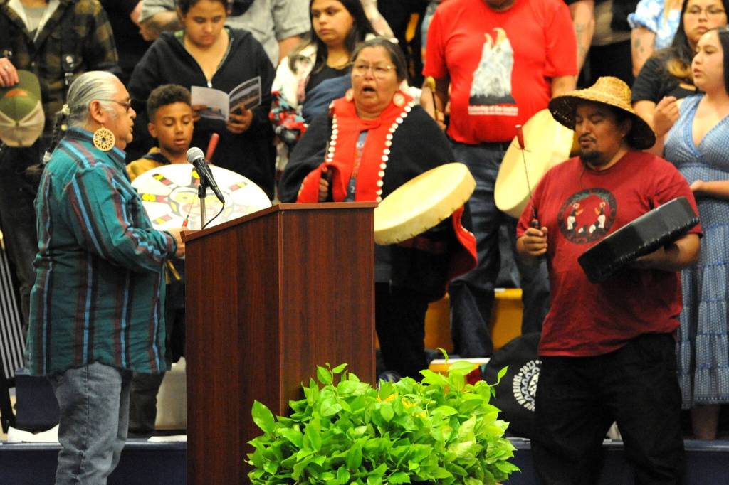After the National Anthem, Quileute Tribal members offered the Honorary Song.
