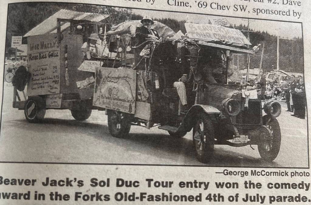 This week in 2000 it was reported that Lloyd and Dar George had been the Grand Marshals of the 4th of July Grand Parade. Ramona Oakes was the new Soroptimist president. Rayonier had donated $5,000 towards the refurbishing of the Shay locomotive in Tillicum Park. The Forks Lions had served 250 meals at the 4th of July salmon bake. Beaver Jack’s “Sol Duc Tours” entry had won the Best Comedy award in the 4th parade (photo).