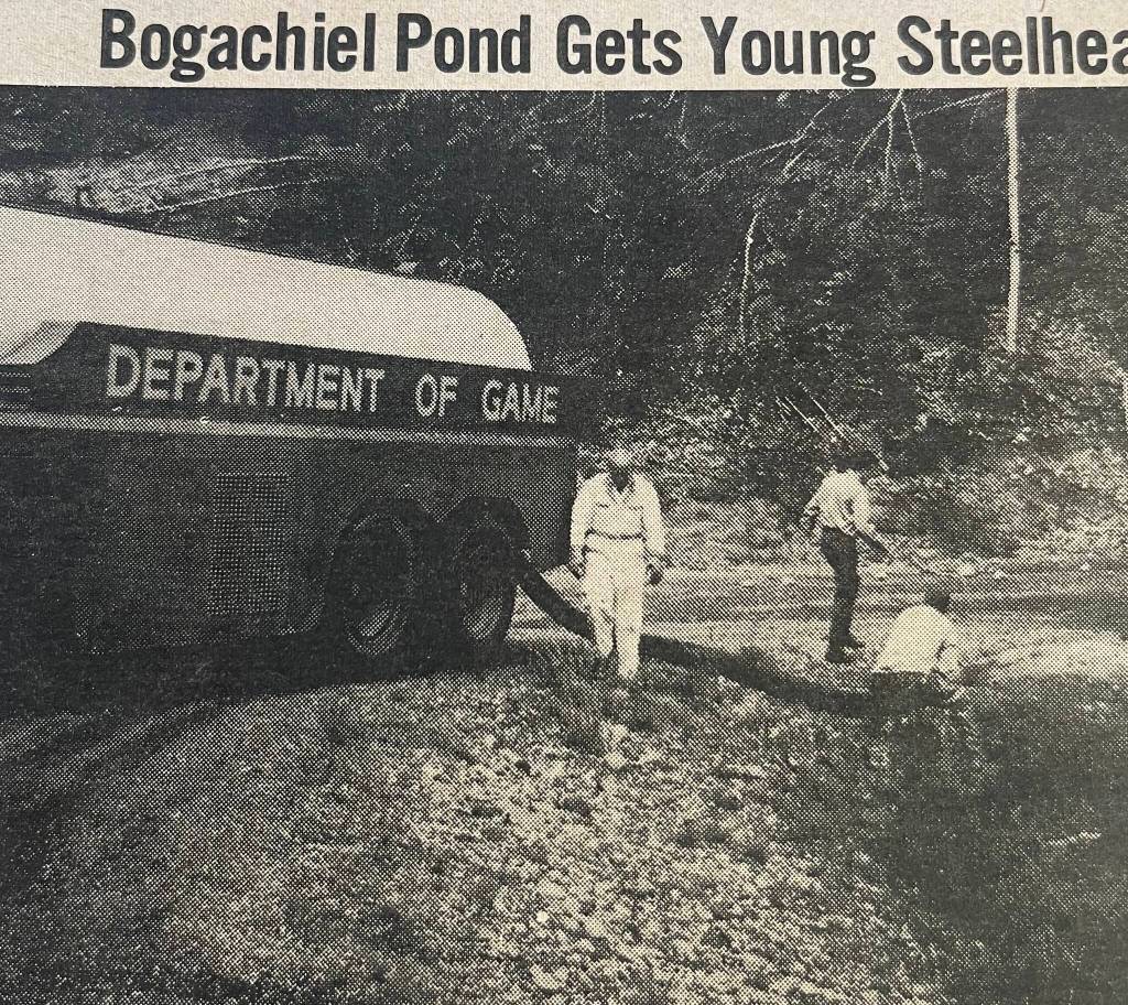In 1968, the Bogachiel rearing pond had received 68,000 steelhead. It was the first installment of the 350,000 that were to be raised at the hatchery. The steelhead were to be released in local rivers the following year (photo). The city was planning a water tank project. A Forks 4-H Fair had been held at the school’s multi-purpose room. The Archer siblings had done well: Greg and Ron both with six blue ribbons, and Kathy with two blue ribbons. In hunting season news Band-tailed pigeon season was to be open September 1-30.
