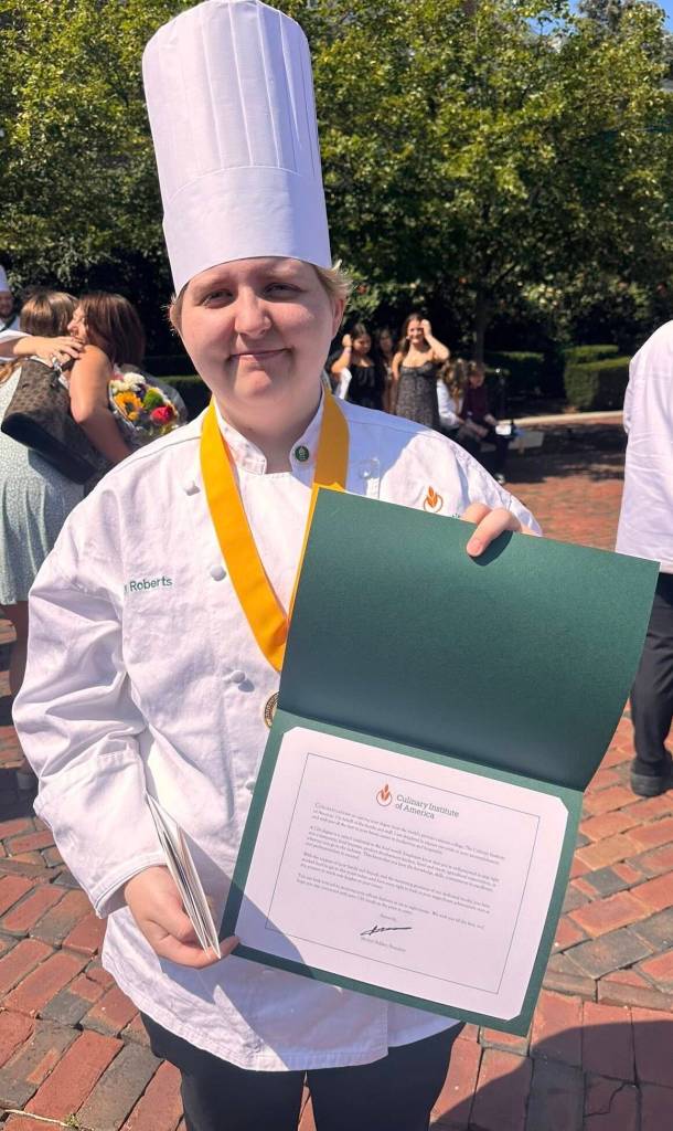 Congratulations to FHS grad Emily Roberts on her recent graduation from the Culinary Institute of America in New York. She has been invited to intern at Disney World.